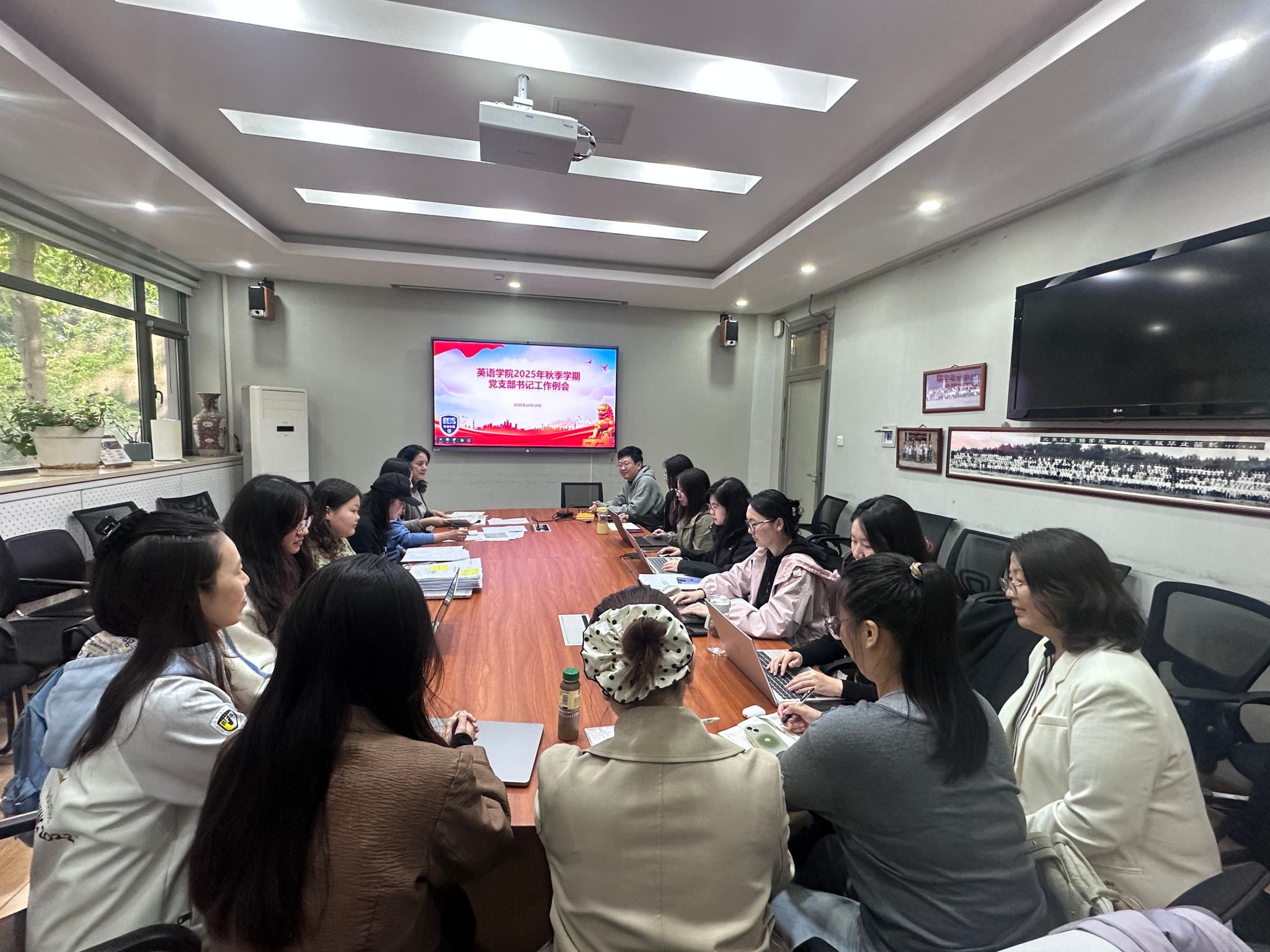 10月15日,英语学院党总支在英语楼111会议室召开2025年秋季学期党支部书记工作例会,全面部署近期党建重点工作任务。会议由学院党总支书记殷悦主持,组织员王欣扬和全体师生党支部书记参会。