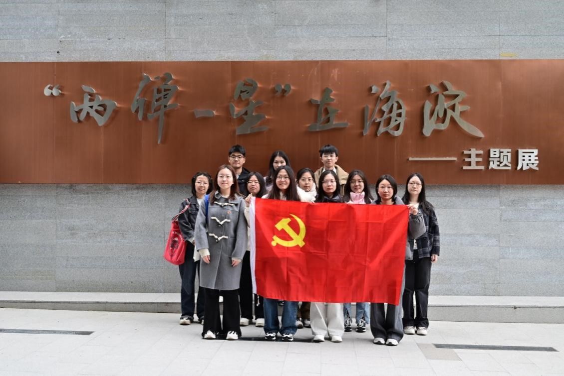 2025年10月22日下午,北京外国语大学英语学院国别(二)支部和国际关系学院国家安全学院公共管理系学生党支部组织秋季学期第一次支部共建活动,前往北京卫星制造厂参观“两弹一星在海淀”主题展览。英语学院国别研究(二)党支部的党员、发展对象和入党积极分子一同参加了本次活动。