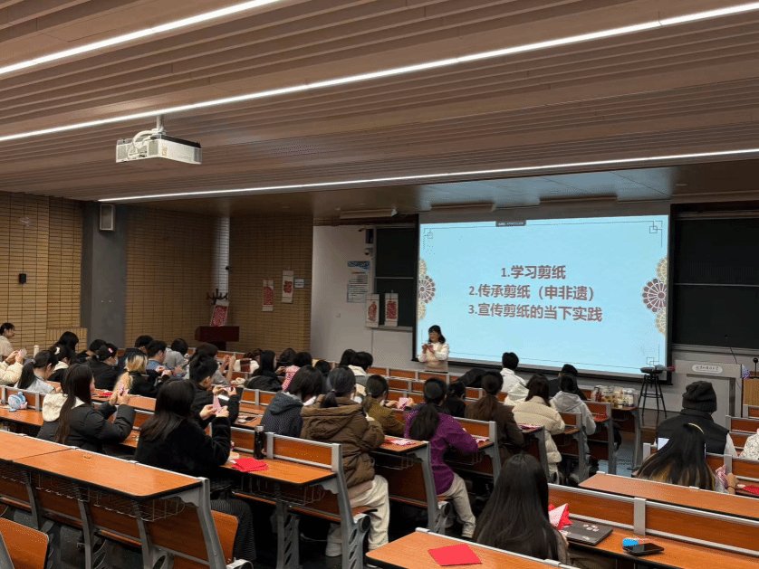 为深入贯彻“文化自信”教育理念,推动中华优秀传统文化在青年学子中的传承与创新,助力学生在非遗实践中提升跨文化传播素养,2025年10月25日下午,北京外国语大学英语学院本科生低年级党支部于逸夫楼第二阶梯教室成功开展“对话非遗,拥抱世界”活动。本次活动邀请辉县剪纸传承人李爱荣女士作为主讲嘉宾,并开展非遗剪纸体验工作坊。100余名英语学院学子踊跃参与,沉浸式感受传统剪纸艺术的独特魅力。