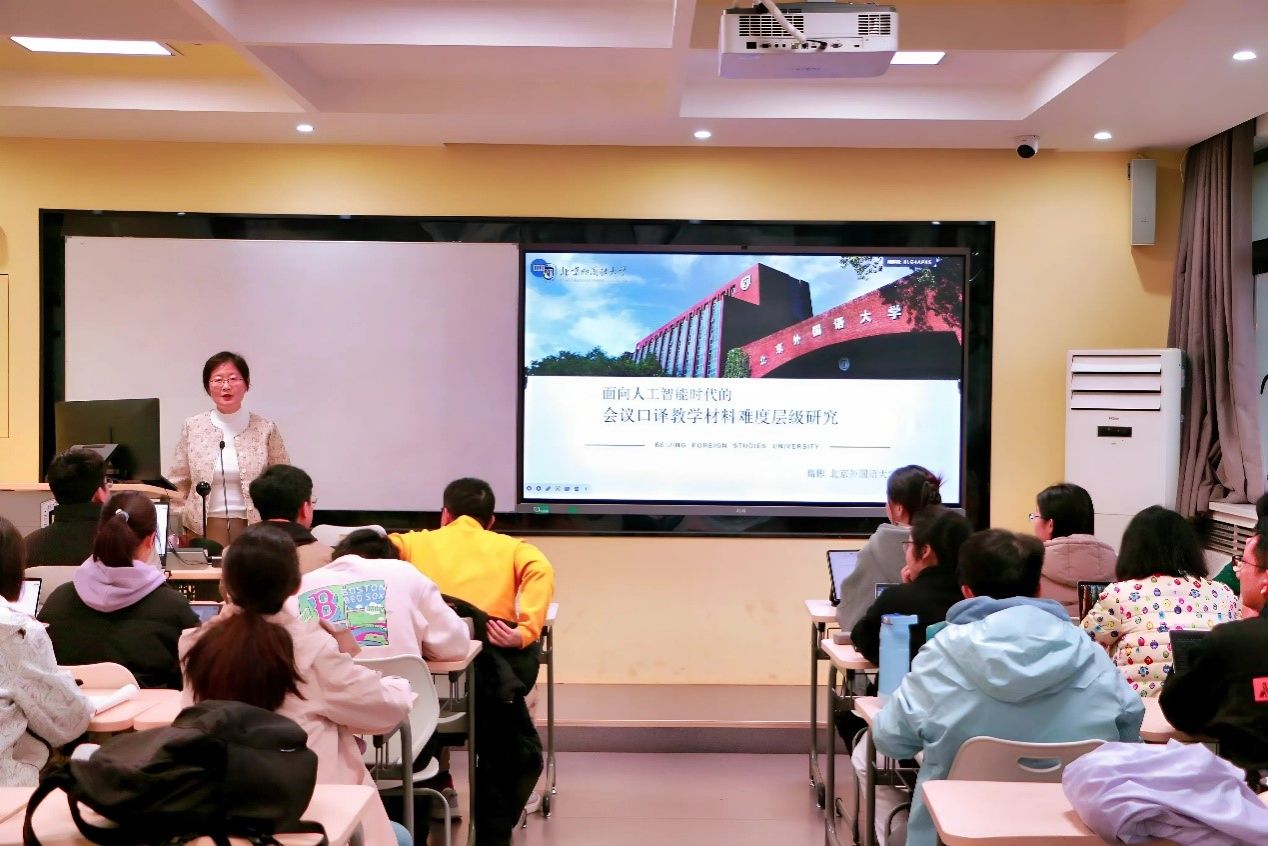 2025年10月22日,由北京外国语大学英语学院主办的“知周讲堂”第三期讲座在英语楼417教室成功举行。英语学院高彬教授应邀做题为“面向人工智能时代的会议口译教学材料难度层级研究”的讲座,吸引了上百名师生到场参与。