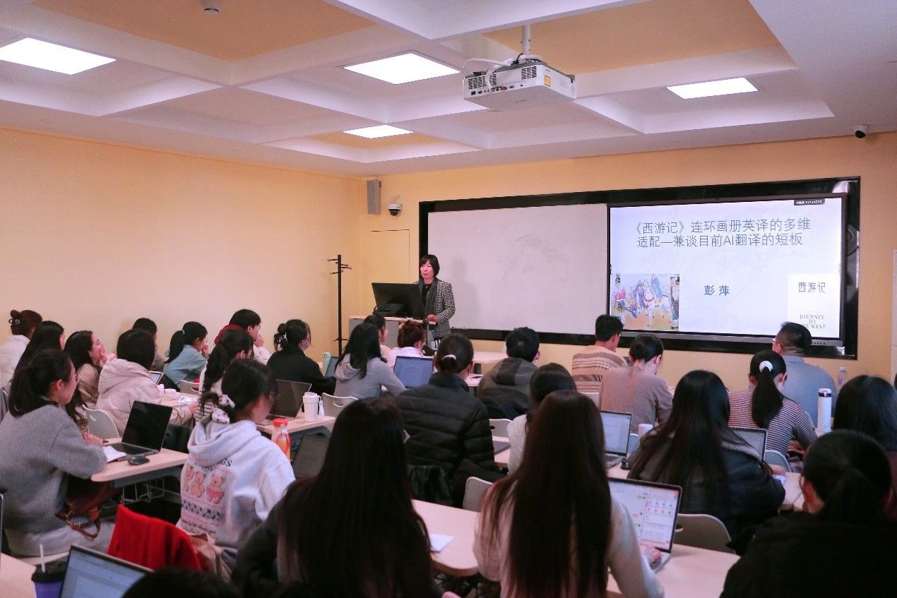 2026年3月11日,由北京外国语大学英语学院主办的“知周讲堂”第一期讲座在英语楼417教室成功举行。英语学院彭萍教授应邀作题为“《西游记》连环画册英译的多维适配——兼谈目前AI翻译的短板”的讲座,吸引了上百名师生到场参加。