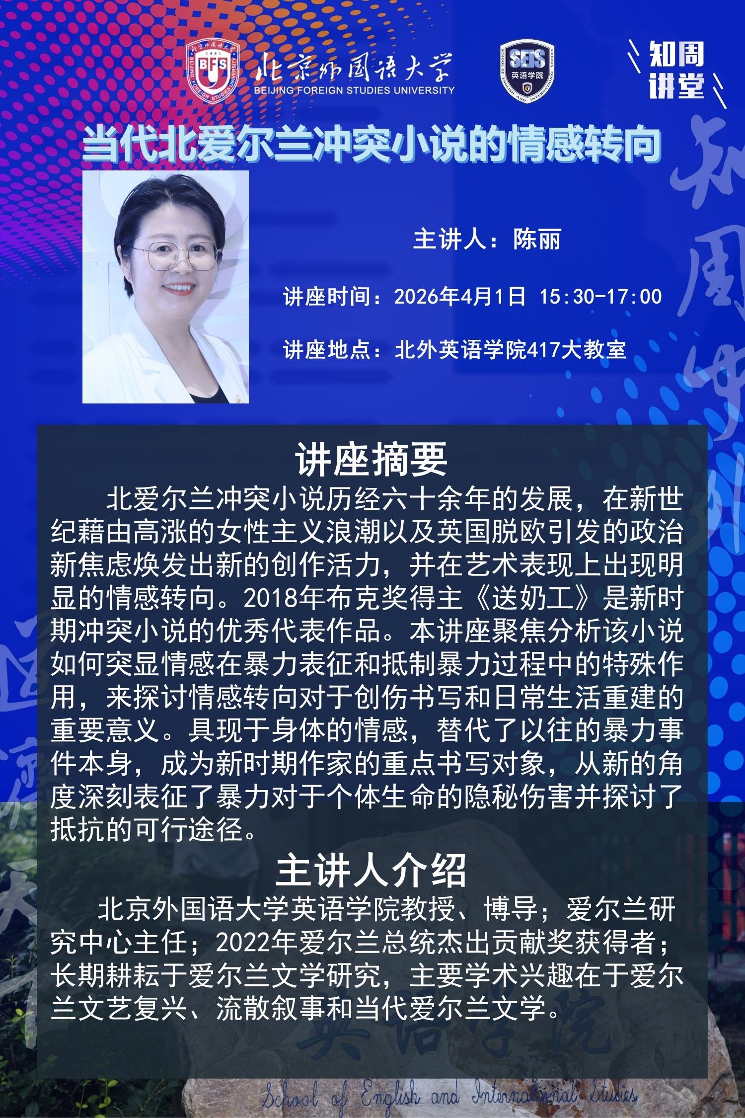 4月1日讲座:当代北爱尔兰冲突小说的情感转向