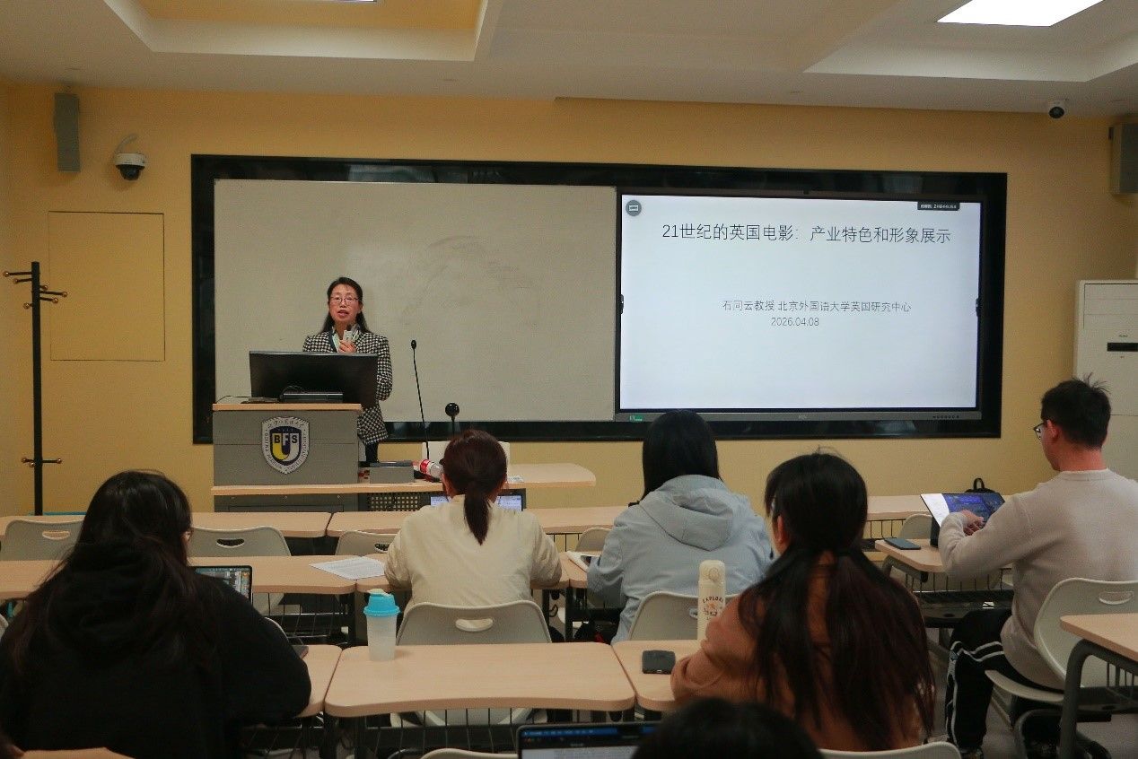 2026年4月8日,北京外国语大学英语学院“知周讲堂”系列讲座于英语楼417教室顺利举行。英国研究中心石同云教授应邀作题为“21世纪的英国电影:产业特色和形象展示”的学术讲座。本次讲座内容深入、视角多元,吸引了众多师生参与。