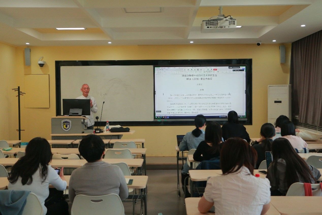 陈国华以《序曲》第三章第一至二百六十七行诗节为线索,依照原诗顺序逐次展开讲解,呈现了青年华兹华斯初抵剑桥、立于人生岔路口时,渴望通过文学创作有所作为的昂扬心志。讲座中所涉诗行的中文译文均由陈国华亲自翻译,译文风格与1805年版《序曲》清新简洁的笔调保持一致。陈国华对第三章字句的考订严谨细致,直至讲座开始前仍在反复推敲译文遣词造句是否达到"信达雅"的境界,其治学态度令在场师生深为感佩。